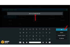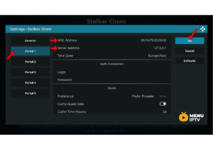 Step 8: Select Portal 1, and here add the Server address provided by your IPTV distributor and Mac Address of device. After entering the info accurately, select “OK“