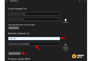 Step 3: Now on the “Remote Channel List section“, in the first field, enter a name for your playlist and in the second field insert your M3U playlist URL. Now click on “Add remote list” and proceed to the next section.