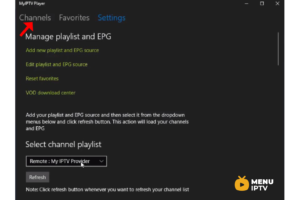 Step 4: Now head back to the settings section again and on the Select channel playlist section and select the playlist you just added and click on “Refresh“.